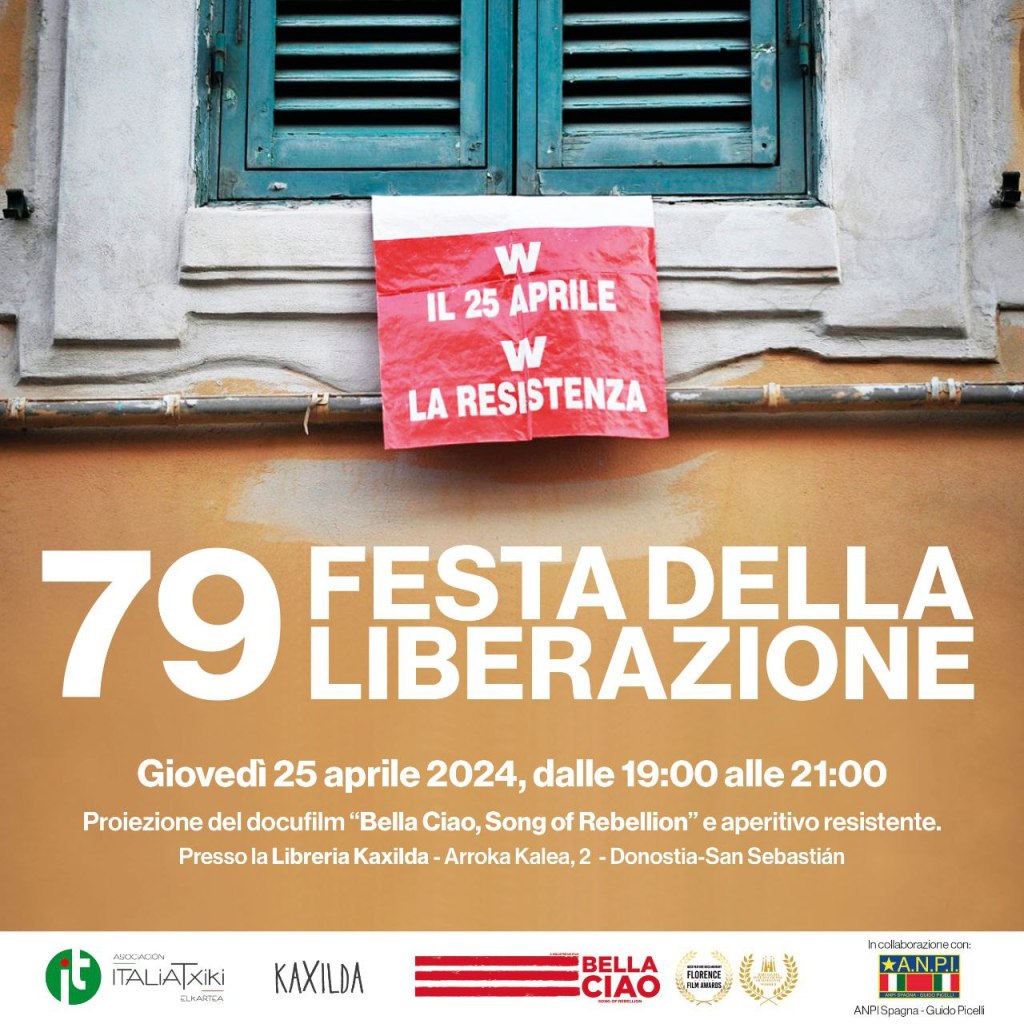A San Sebastián, il giovedì 25 aprile, l’Asociación ItaliaTxiki, con la collaborazione di ANPI Spagna, presenterá al pubblico il docufilm Bella Ciao – Song of Rebellion.