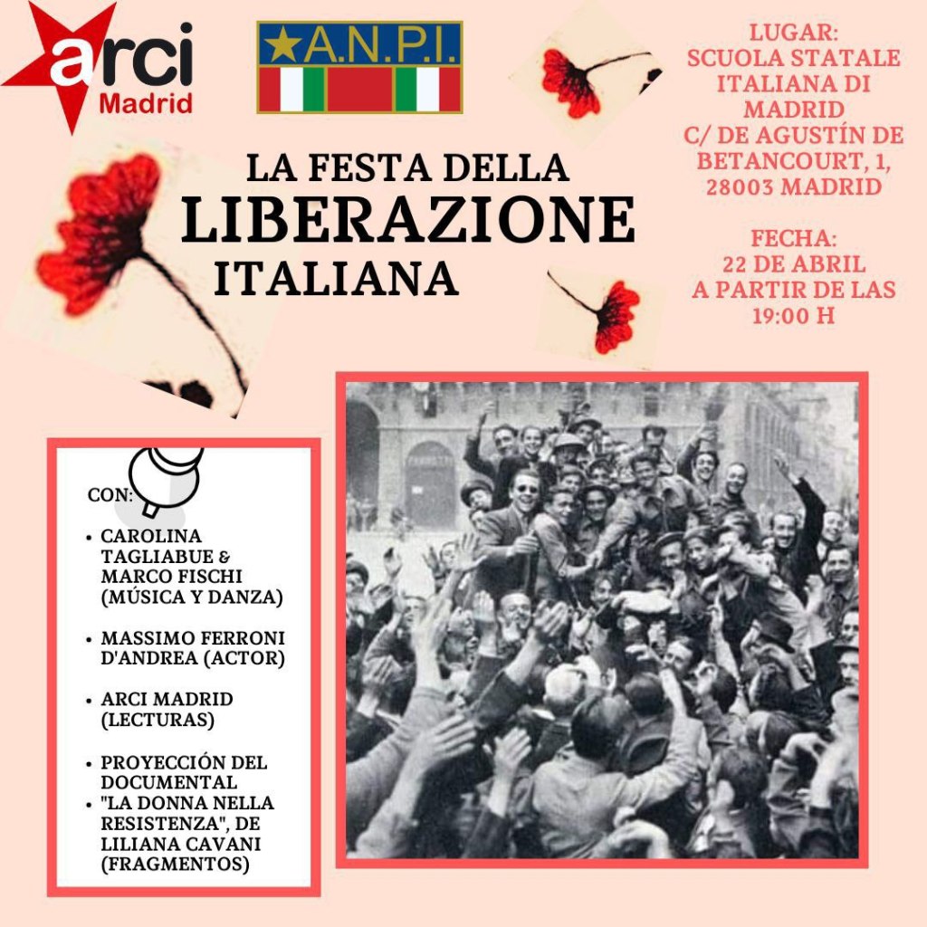 Per questo motivo, ANPI Spagna, in collaborazione con altre associazioni italiane, ha deciso quest’anno di estendere i festeggiamenti per il 25 Aprile a tutto il territorio spagnolo, con lo scopo di unire nell’antifascismo sia la numerosa comunità italiana presente in questo paese, sia tutte le persone, di qualsiasi nazionalità, che condividano gli ideali che furono alla base della Resistenza.